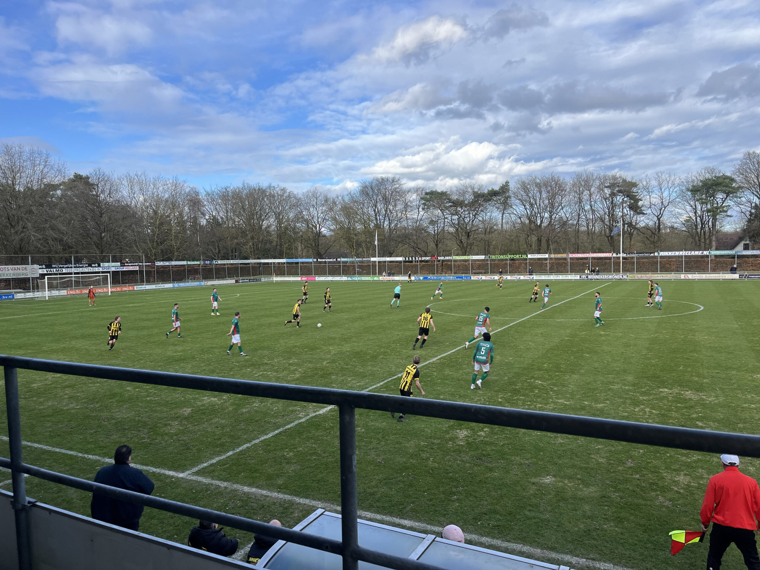 Vanaf het eerste fluitsignaal nam Germania het initiatief. De ploeg zette vroeg druk en dwong SES ver terug op eigen helft. Het spel speelde zich in de openingsfase vrijwel volledig af rond het strafschopgebied van SES. Na tien minuten viel de openingstreffer. Gezien het spelbeeld was de 1-0 meer dan terecht te noemen. SES slaagde er nauwelijks in om onder de druk uit te voetballen. Ballen naar voren werden snel onderschept en tweede ballen waren vrijwel allemaal voor Germania. Niet veel later viel ook de 2-0. In het eerste kwartier had SES geen moment grip op de wedstrijd en leek het vooral tegenhouden. Halverwege de eerste helft werd het duel definitief opengebroken. Na 26 minuten lag de 3-0 al in het net. Germania combineerde eenvoudig en vond telkens de vrije man tussen de linies. Kort daarna volgde ook de 4-0, na balverlies op het middenveld. De spits van Germania kreeg vrije doortocht richting het doel en rondde beheerst af. Met een ruime achterstand zocht SES de kleedkamer op.